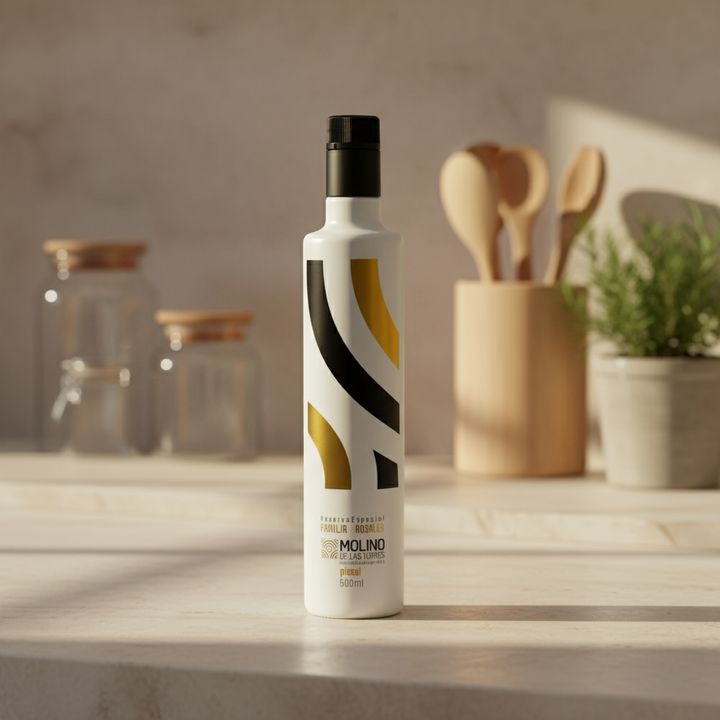 Natives Olivenöl extra (AOVE) von hoher Qualität, aus früher Ernte und der Sorte Picual, produziert in der Region Alcaudete (Jaén). Dieses Öl zeichnet sich durch eine Reihe von Eigenschaften aus, die es sehr besonders machen: