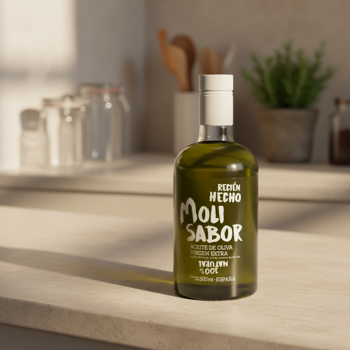 Molisabor Picual Erster Tag der Ernte ist ein Premium Natives Olivenöl Extra, hergestellt mit Oliven der Sorte Picual, die am ersten Tag der Erntesaison gepflückt wurden. Ein AOVGE von großer aromatischer Intensität, der die reinste und frischeste Essenz der Olivenhaine von Jaén widerspiegelt.
