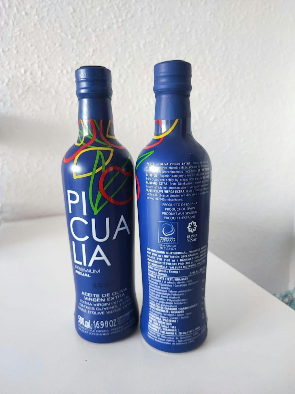 The "Picualia Premium Picual" Extra Virgin Olive Oil in a 500 ml bottle is a high-quality oil made from Picual olives. It has a green colour with light yellow tones, is creamy, full-bodied and very shiny. On the nose, it offers a freshness of medium-high intensity with a predominance of green fruitiness, highlighting aromas of leaves, freshly cut grass, banana, fig, tomato plant and mint. On the palate, its silky texture provides a pleasant entry, with a balanced flavour and a slight astringency. Ideal for pairing with salads, fish, red meats and traditional stews. It is presented in a tinted and silk-screened 500 ml glass bottle, which ensures the conservation and protection of the oil, maintaining its freshness and flavour.