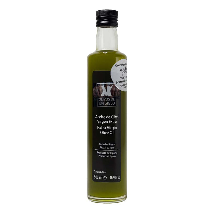 Olivos de un Siglo Primer Día de Cosecha Sin Filtrar es un AOVE Picual temprano obtenido de aceitunas recogidas en los primeros días de campaña.