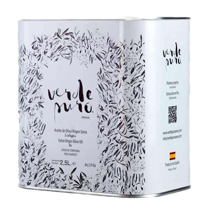 Verde Puro Picual Ecológico Lata 2.5L es un aceite de oliva virgen extra de categoría superior, elaborado exclusivamente a partir de aceitunas Picual procedentes de cultivo ecológico certificado. Un AOVE de carácter intenso, equilibrado y de gran pureza, ideal para quienes buscan la máxima calidad y sostenibilidad.